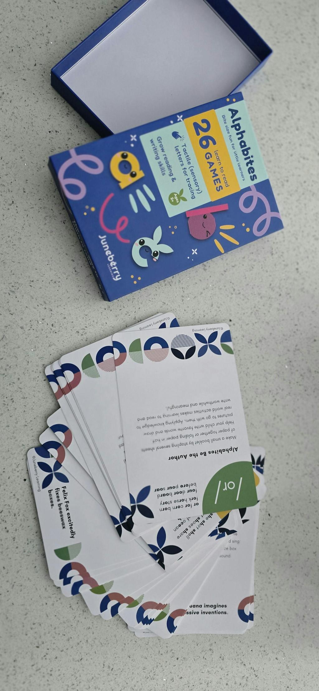 "What a fun way to learn letter-sound relationships! The young learners in my family are always keen to play the active games on the Alphabites cards. Their self-confidence in transferring their knowledge of letter sounds to blending sounds together is exciting. Thank you Juneberry Learning!" - Orysha